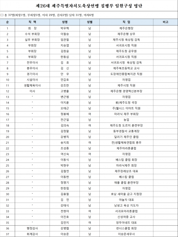 제목 제26대 제주특별자치도육상연맹 집행부 임원구성 명단