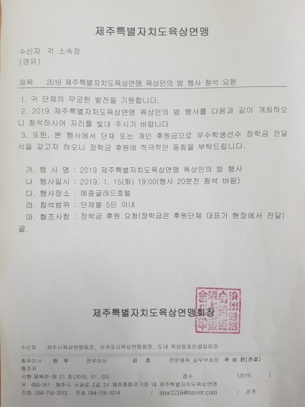 2019 육상인의밤 행사 많은 참여 바랍니다.